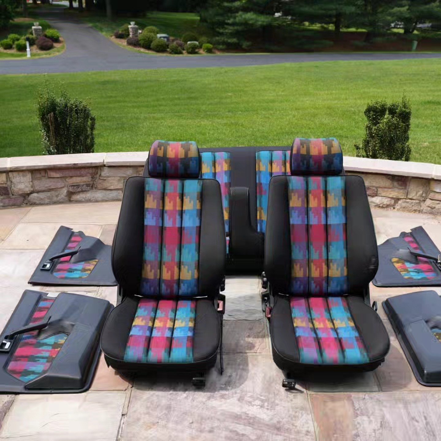 - Front & Rear Seats: Fully reupholstered or NOS (New Old Stock) seat covers with reinforced bolsters for comfort and durability.