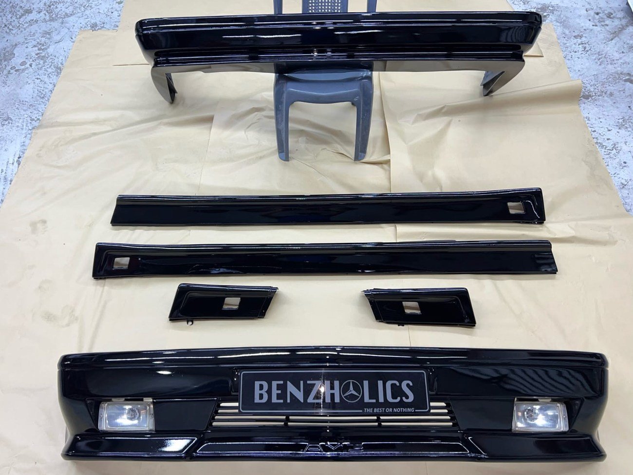 This kit works well on daily-driven classics, collector vehicles, and show builds where authentic AMG styling is desired without compromising originality or ride quality.